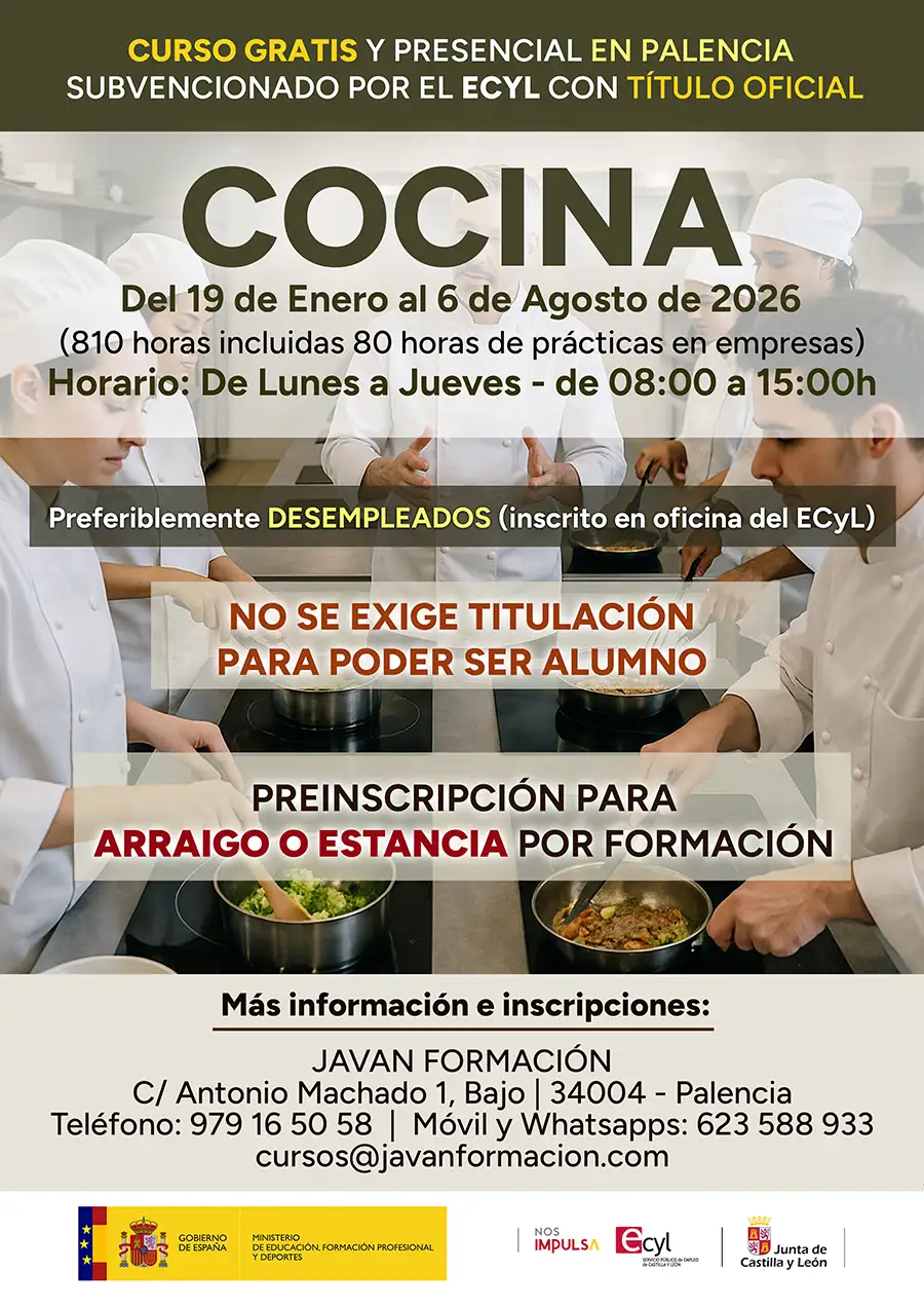 Curso Presencial y gratuito a realizar en Palencia. Subvencionado por el ECYL, con título OFICIAL, orientación laboral y prácticas en empresas. El curso es en horario de mañanas de Lunes a Jueves, de 8:00 a 15:00 horas.